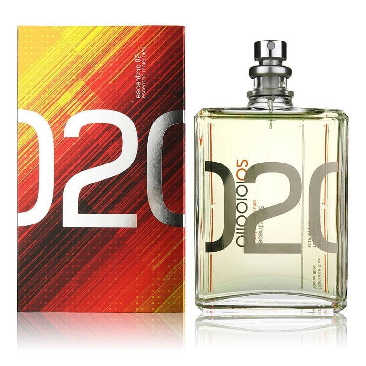 كولونيا Escentric 02 من Escentric Molecules ، Escentric 02 ، التي تم إطلاقها في عام 2008 ، تستمد رائحتها المميزة من Ambroxan. على الرغم من أنه تم إنشاؤه في المختبر ، إلا أن أمبروكسان متطابق في طبيعته مع ambergis السلس والغني وذات القيمة العالية. الروائح الأخرى المماثلة للطبيعة التي تختلط مع الأمبروكسان هي مسكون حيواني ، مسك صنع معمليًا وهيديون أخضر شبيه بالياسمين. يكتمل المزيج برائحة الليمون الحامض والأوريس العطري وخلاصة زهرة المسنين المنعشة. إنه منعش وممتع وجذاب وحسي ومناسب للنساء والرجال على حد سواء. إنه مصمم للتفاعل مع كيمياء جسم من يرتديه وله رائحة طويلة الأمد تستمر في التطور بمرور الوقت.