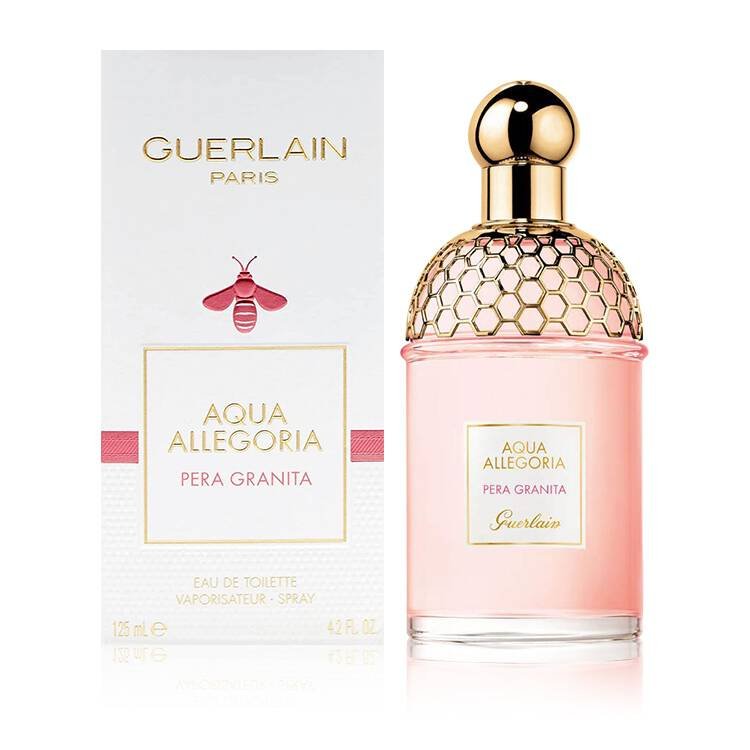 عطر Aqua Allegoria Pera Granita من Guerlain ، تم إنشاء Aqua Allegoria Pera Granita بواسطة أنف Thierry Wasser وتم إصداره في عام 2016. تُترجم Pera Granita إلى "شراب الكمثرى" ، لذا فليس من المستغرب أن يذكرنا هذا العطر بالحلوى الصيفية. مكونات من البرغموت والليمون والجريب فروت تفتح هذه الرائحة الحمضية. يتكون قلب العطر من الكمثرى ، بالطبع ، إلى جانب الأوسمانثوس وزهر البرتقال. ينتهي العطر بمكونات أساسية من خشب الأرز والطحالب والمسك الأبيض.