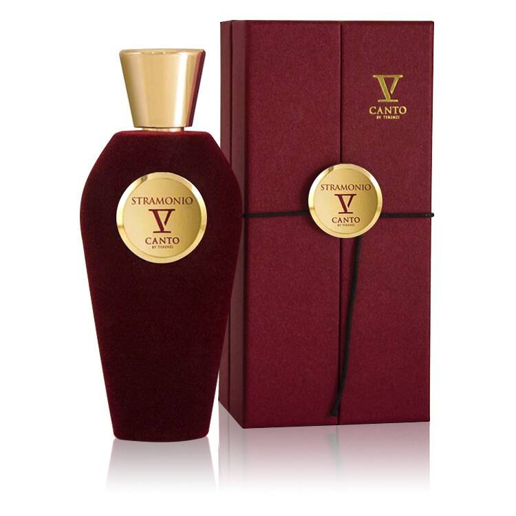 عطر Stramonio V من V Canto ، تم تسميته لرائحة الشيطان ذات الرائحة الحلوة ولكن السامة ، Stramonio V هو مسك بلسمي كهرماني جذاب لا يقاوم معزز بأزهار مقنعة وخشب فخم وغريب. الافتتاحية عبارة عن مزيج من الأزهار المهدئة والحسية من الياسمين والأوركيد الثمين والقرنفل الطازج الممزوج بالزعفران الناعم. يكتسب العطر قوة وكثافة في القلب ، حيث يمزج العنبر الغني والمعبّر مع النغمات المخملية من الفانيليا ومسك الورد. الروائح الأساسية من الباتشولي الأحمر الترابي الحلو ، وخشب الأبنوس ، وطحلب السنديان ، والمسك تنتج عناقًا نهائيًا طويل الأمد للزهور الخشبية الدافئة.