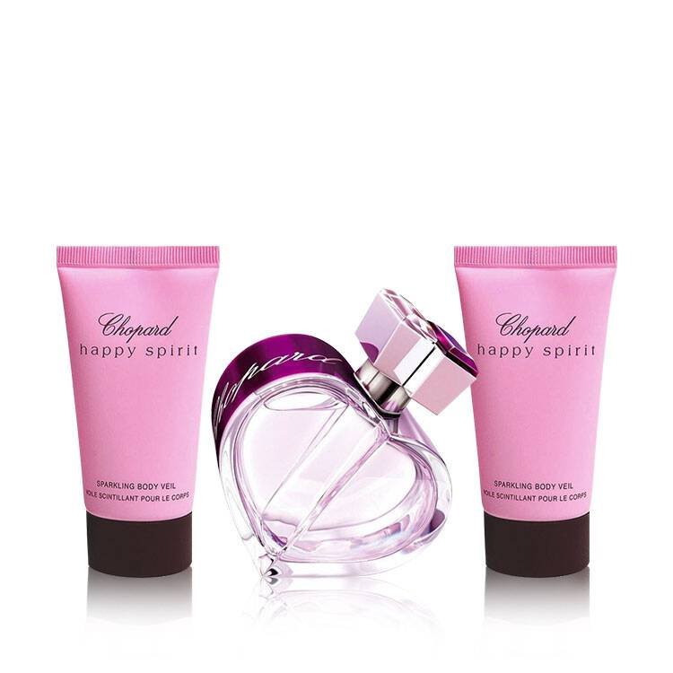 تتكون من أو دو برفيوم 75 مل + اوشن للجسم 50 مل + شاور جل 50 مل Happy Spirit Chopard عطر زهري للنساء . Happy Spirit صدر عام 2007. Dominique Ropion قام بتوقيع هذا العطر. إفتتاحية العطر توت العليق و البرتقال المر; قلب العطر زهر العسل - صريمة الجدي و أوسمانثوس; قاعدة العطر تتكون من أخشاب الكشمير, العنبر و المسك.