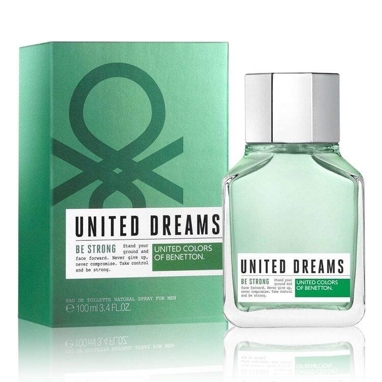 United Dreams Be Strong Cologne من Benetton ، ظهرت United Dreams Be Strong لأول مرة على الرفوف في عام 2014. هذا العطر المعاصر جريء وبلسمي بألوان خشبية ذكورية. المكونات العليا هي اليوسفي الحمضي والليمون والجريب فروت. يستقر الوسط مع الياسمين الزهري والزنجبيل الحار والفلفل الوردي وجوزة الطيب. يختتم العطر المنعش بالبخور الدخاني واللودان وخشب الأرز.