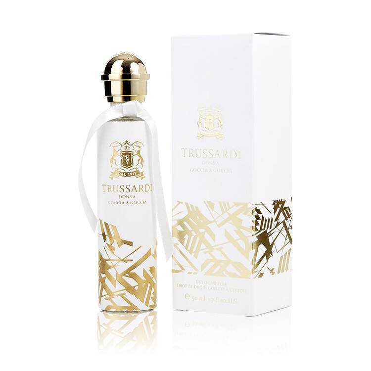 العطر الأنثوي Trussardi Donna Goccia A Goccia تم إصداره في عام 2017. يبدأ عطر الأزهار الشرقية بمكونات الليمون والحمضيات والفاكهة المائية واليوزو. يضفي شاي الياسمين وزنبق الماء وزهر البرتقال خلاصة الأزهار الآسيوية المميزة للعطر. المكونات الأساسية من الفانيليا وخشب الأرز وخشب الصندل والباتشولي تدفئ نفحات الأزهار لعطر أنيق يدوم طوال اليوم. حتى الزجاجة تجلب مفهوم الأناقة المتطورة مع التصميم الذهبي على الأبيض المصنفر.