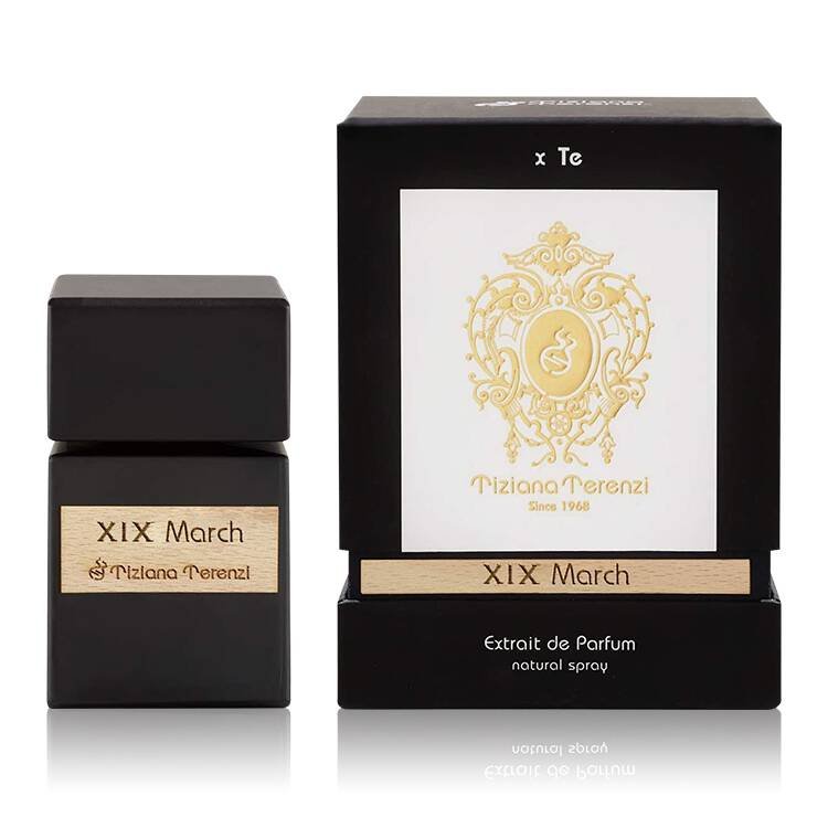عطر Tiziana Terenzi Xix March من Tiziana Terenzi ، تم إصداره في عام 2012 ، Tiziana Terenzi Xix March هو عطر عطري خشبي للجنسين برائحة عطرية ، خضراء ، حارة منعشة ، خشبية ، وحارة دافئة. صُنعت هذه الرائحة للارتداء النهاري خلال الربيع حتى مواسم الخريف ، وتتميز برائحة تدوم طويلاً وانتشار معتدل. يبدأ بمكونات عليا من الأوراق الخضراء والنعناع والقراص والبرتقال. قلب العطر من اللافندر والقرفة والياسمين والقرنفل ، مع مكونات أساسية من خشب الصندل ونجيل الهند وخشب الأرز والمسك وجوزة الطيب وإكليل الجبل.