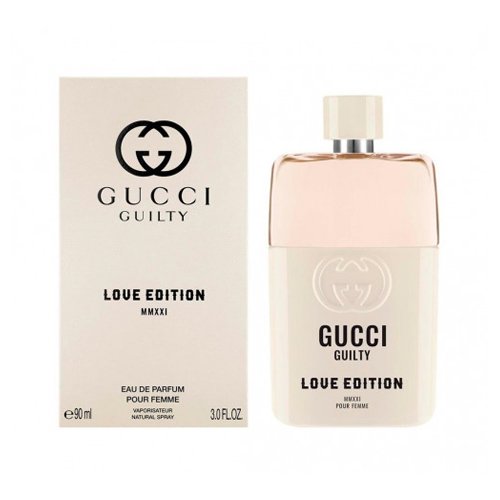 غوتشي غيلتي لوف ايديشن 2021 للنساء القوي هو نفسه العطر الشهير غوتشي غيلتي أو دو بارفان الزهري الرومانسي، يفتتح العطر مقدّمة تعبّر عن رسالة الحب الجريء التي يجسّدها هذا العطر إذ تفوح منها نفحات المندورا الحامضية - هي فاكهة تنمو في جزيرة قبرص في البحر الأبيض المتوسّط، التي تصقلها رائحتا البرغموت المنعش الطبيعي والفلفل الزهري المثير. يعكس قلب العطر رقيه حيث يتباين عبير الليلك مع نفحات وردية وبنفسجية، ويُضاف إليه زيت الجيرانيوم لإنشاء مزيج زهري فريد ومتميز. بصمة العطر هي ثنائي عميق وطبيعي من زيوت الباتشولي؛ مركّز الباتشولي وزيت الباتشولي المستخرج بالتقطير الدقيق، الممزوجان مع نفحات عنبرية.